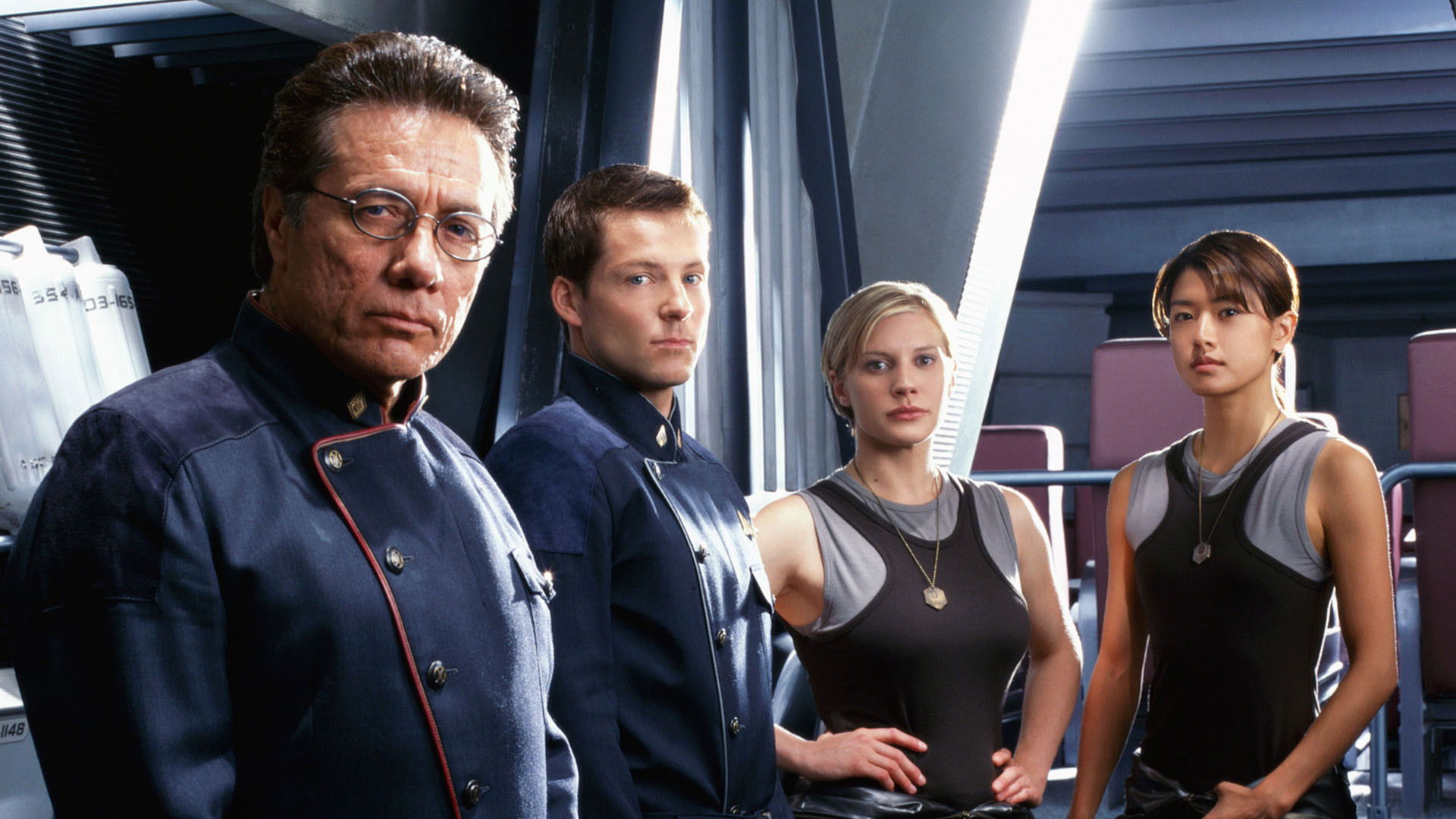 Stars: Edward James Olmos (Commander William Adama), , Mary McDonnell (Laura Roslin), , Jamie Bamber (Lee 'Apollo' Adama), , Katee Sackhoff (Kara 'Starbuck' Thrace), , James Callis (Gaius Baltar), , Tricia Helfer (Number Six), , Tahmoh Penikett (Karl 'Helo' Agathon), , Grace Park (Sharon 'Boomer' Valerii), , Michael Hogan (Saul Tigh), , Aaron Douglas (Galen Tyrol), , Alessandro Juliani (Felix Gaeta), , Michael Trucco (Samuel T. Anders), , Callum Keith Rennie (Leoben),
